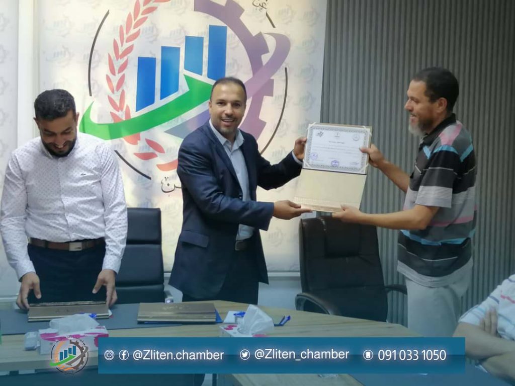 إختتام الدورة التدريبية في إعداد وكتابة المراسلات والتقارير الإدارية لموظفي غرفة التجارة والصناعة والزراعة زليتن بالتعاون مع كلية الإقتصاد والتجارة بالجامعةالأسمرية .